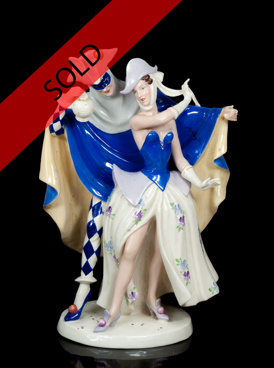 Elly Strobach König „ Pierrot and Columbine”, Royal-Dux, after 1939