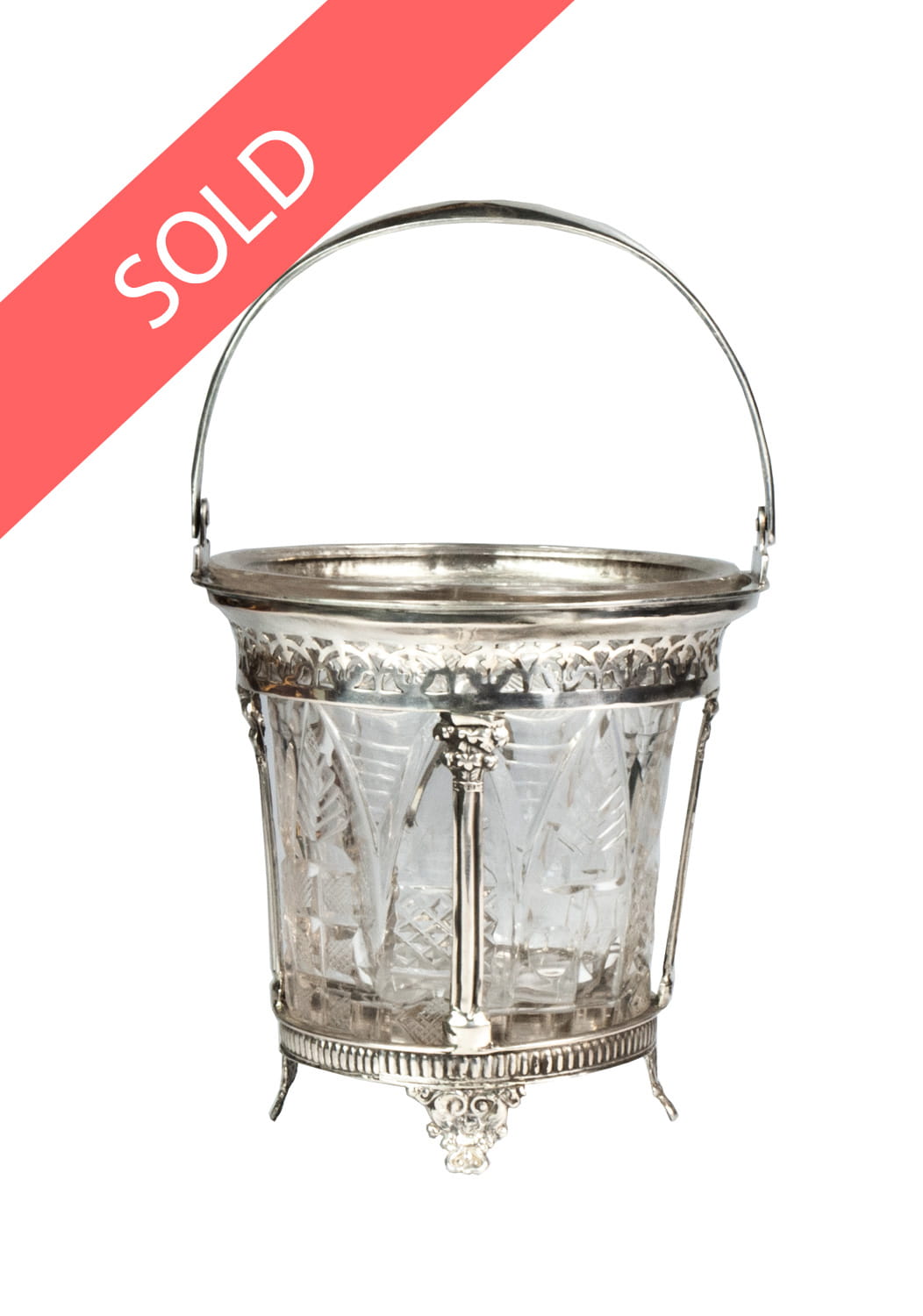Basket sugar bowl, silver hallmark 13, glass refill, signed.