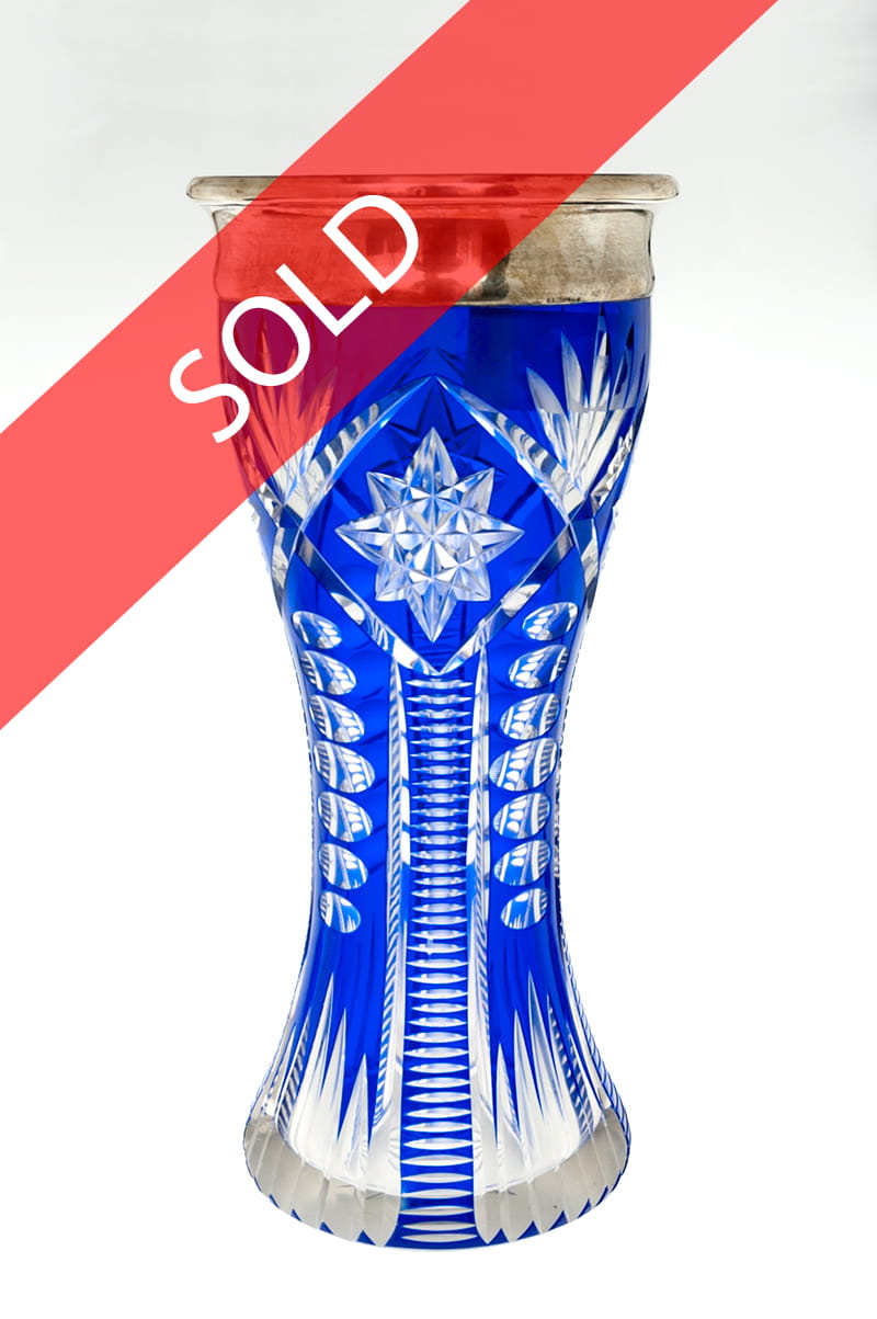 A. Valenti vase made of laminated, cut and two coloured glass, silver bound (probe 916), signed. Height: 35 cm.