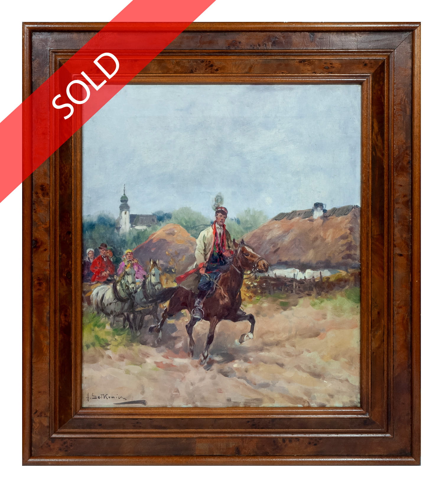 Adam Setkowicz (Krakow 1875 - 1945 Krakow) - Polish painter. A popular landscape painter. In the years 1897-1898 he studied at the Academy of Fine Arts in the studio's of Teodor Axentowicz and Jan Matejko. He painted scenes from the life of the Polish countryside: sleigh rides, hunting, folk customs, forest landscapes. He painted views of Krakow architecture, allegorical scenes and paintings about Judaic themes.