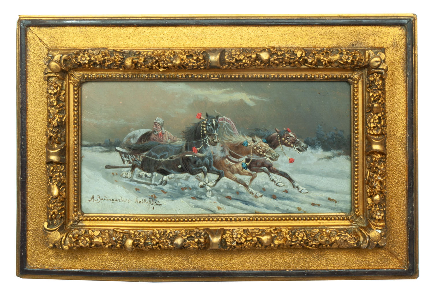 Adolf Baumgartner-Stoiloff Junior (Vienna 1893 - 1939 Vienna) - Austrian painter. He studied at the Academy of Fine Arts in Vienna and also was a pupil of his father - painter Adolf Constantin Baumgartner-Stoiloff. He painted genre scenes: life of fishermen and paintings with running horses typical for Polish painters in Munich.