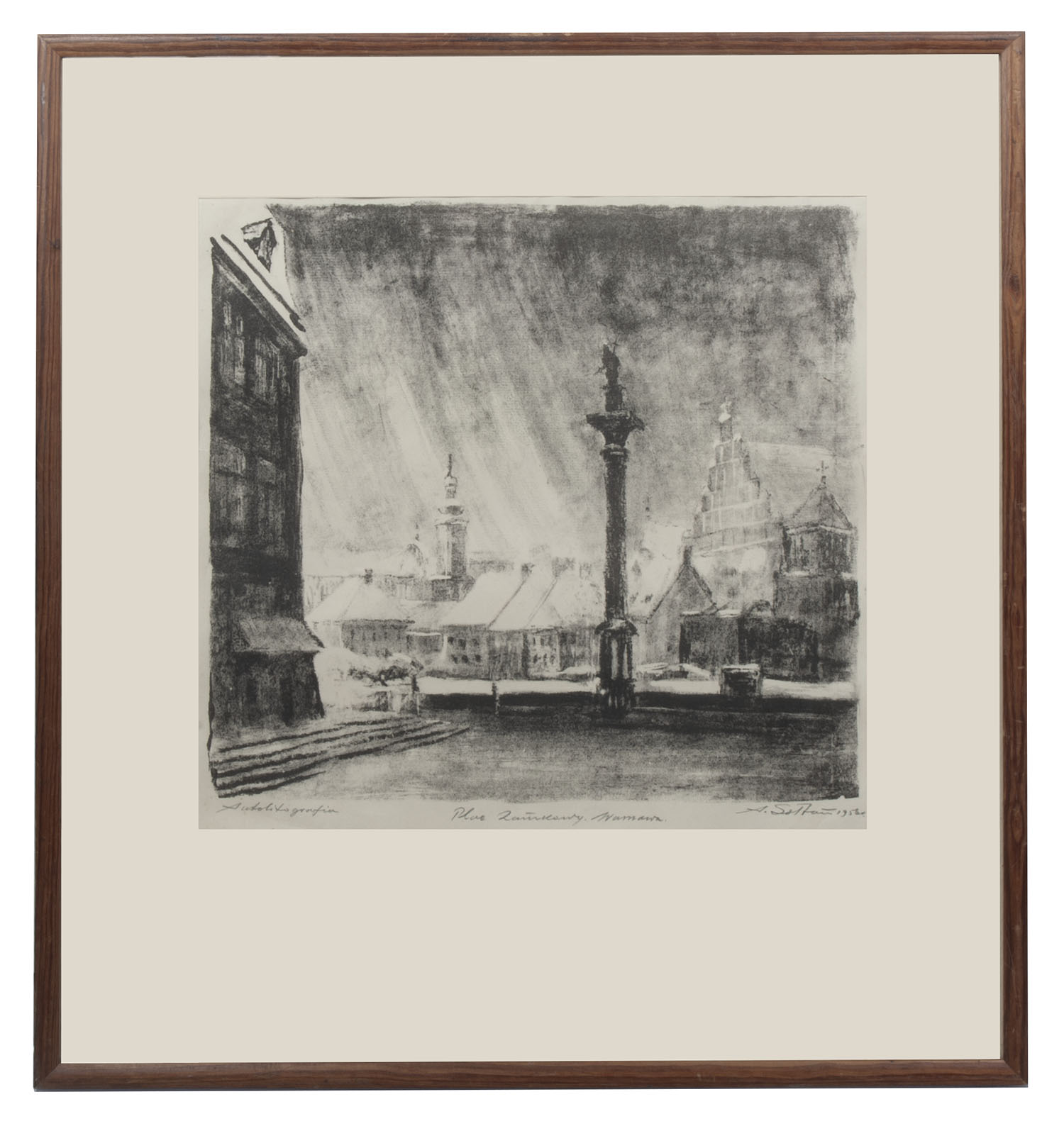 Autolithograph on paper, signed dated and described “Autolitografia Plac Zamkowy Warszawa A. Sołtan 1956”