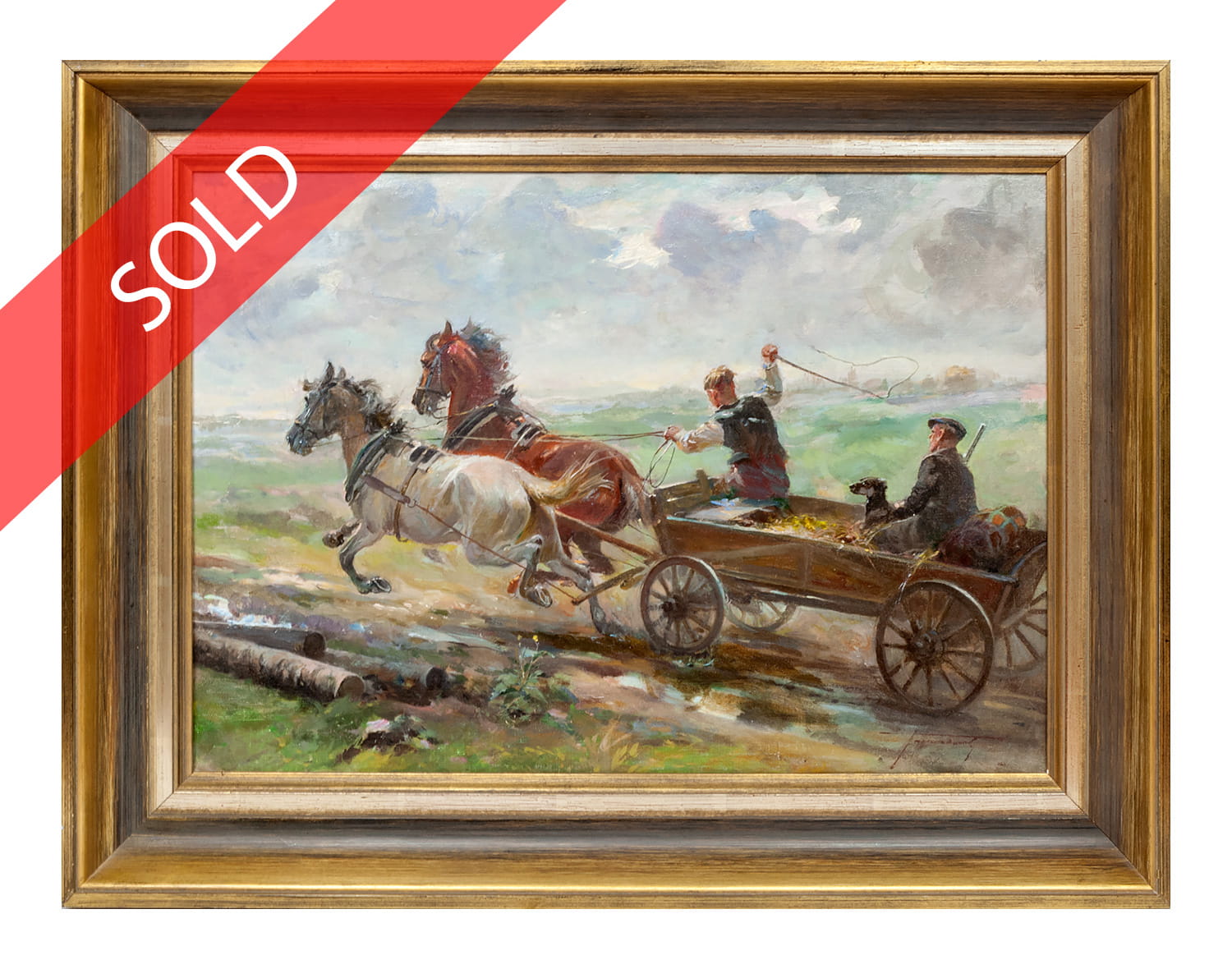Antoni Włodzimierz Trzeszczkowski (1902 - 1977 Warsaw) he fought in the Polish-Bolshevik War in 1920, which had a impact on the subject of his work. He was created many paintings with battle content, horse scenes, the fight of hussars and uhlans. Many paintings of the artist can be found in the National Museum in Warsaw and in the Wrocław Arsenal. He used various painting techniques.