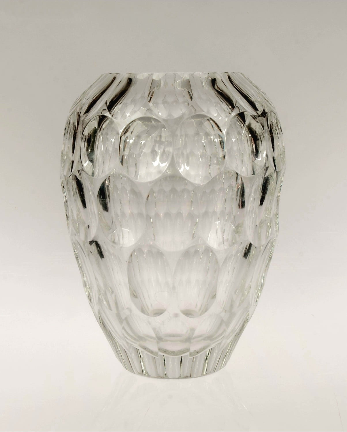 Transparent, crystal glass vase with grinded decoration 1000 eyes.