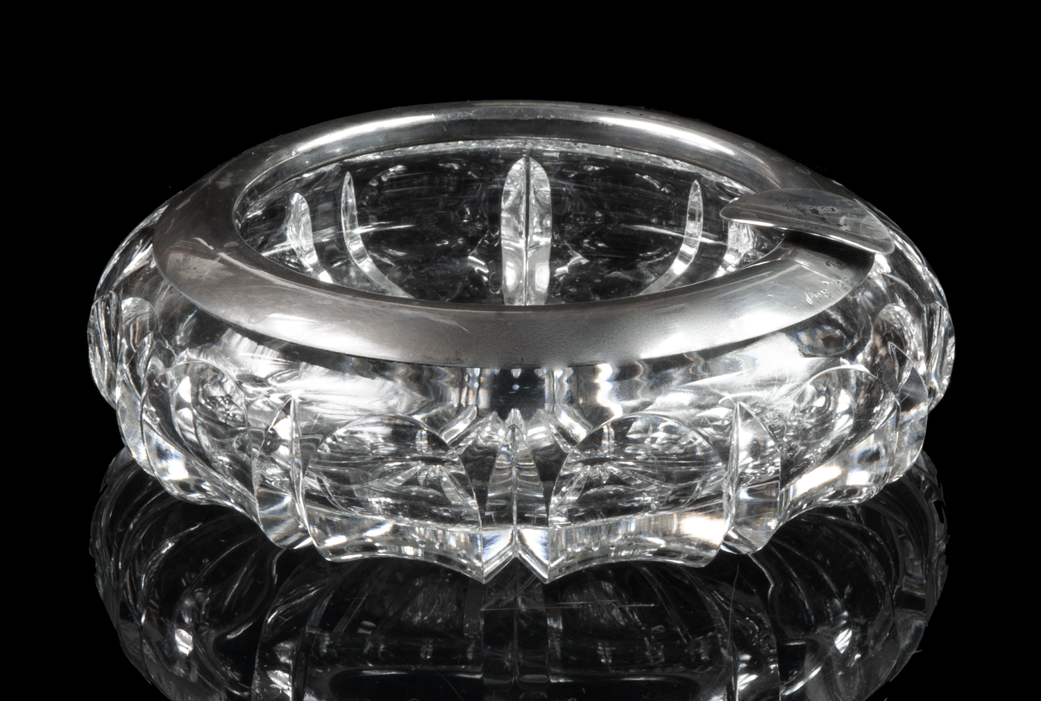 Art deco ashtray; glass, silver 835, signed illegibly.