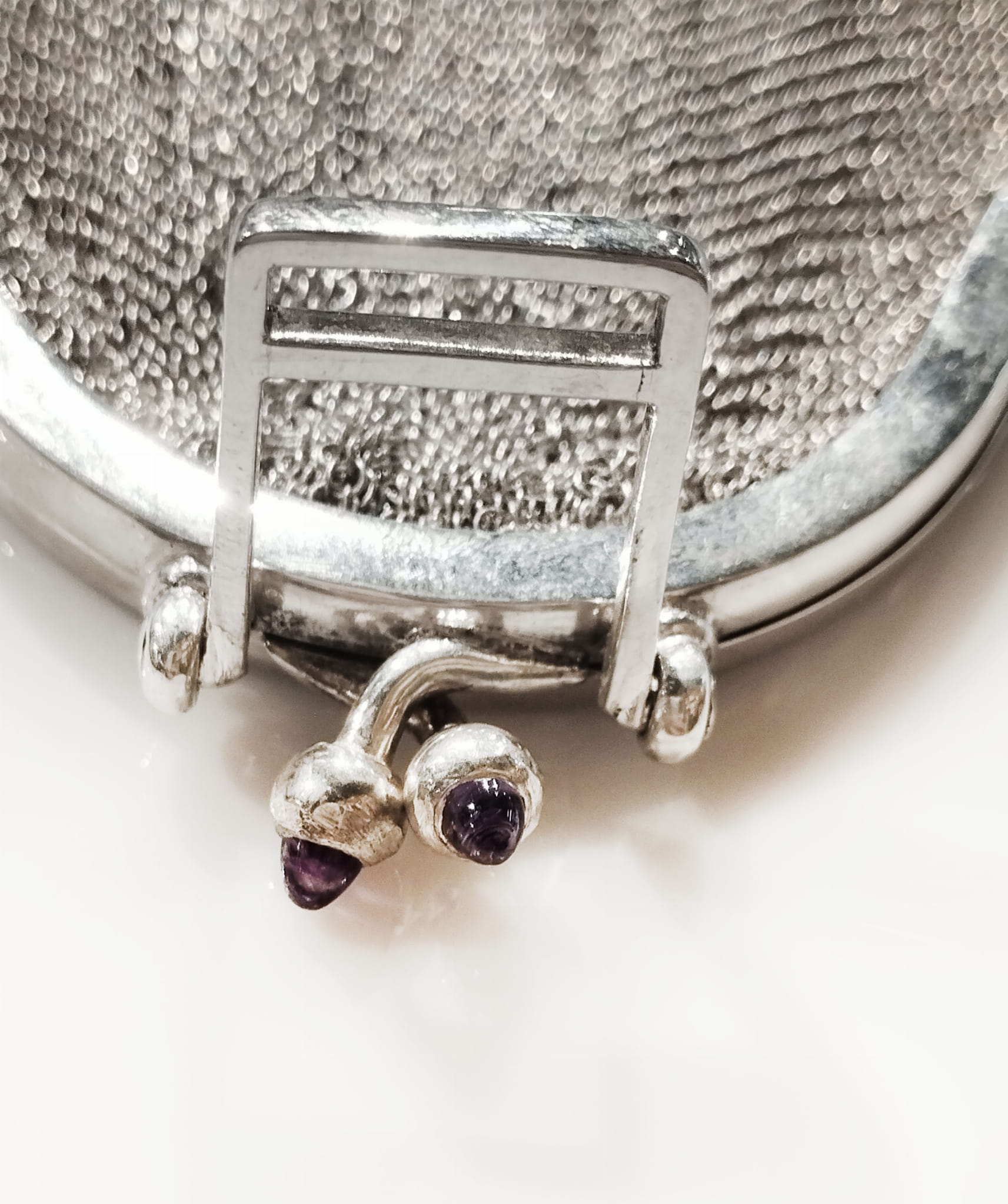 Silver 800, enamel, amethysts, signed "JB".