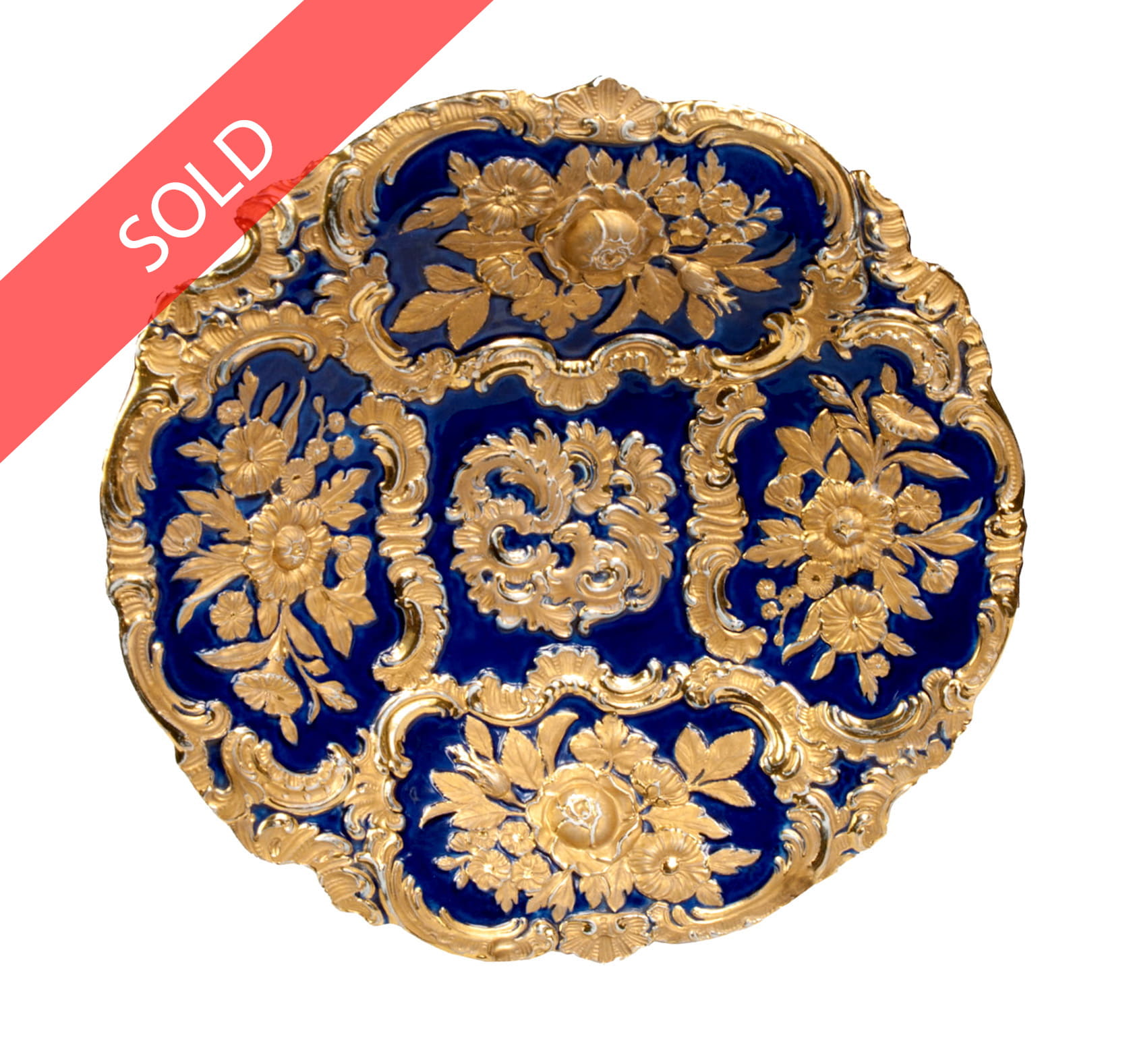 Plade made of hand painted porcelain, richly gilded, signed with Meissen hallmark.