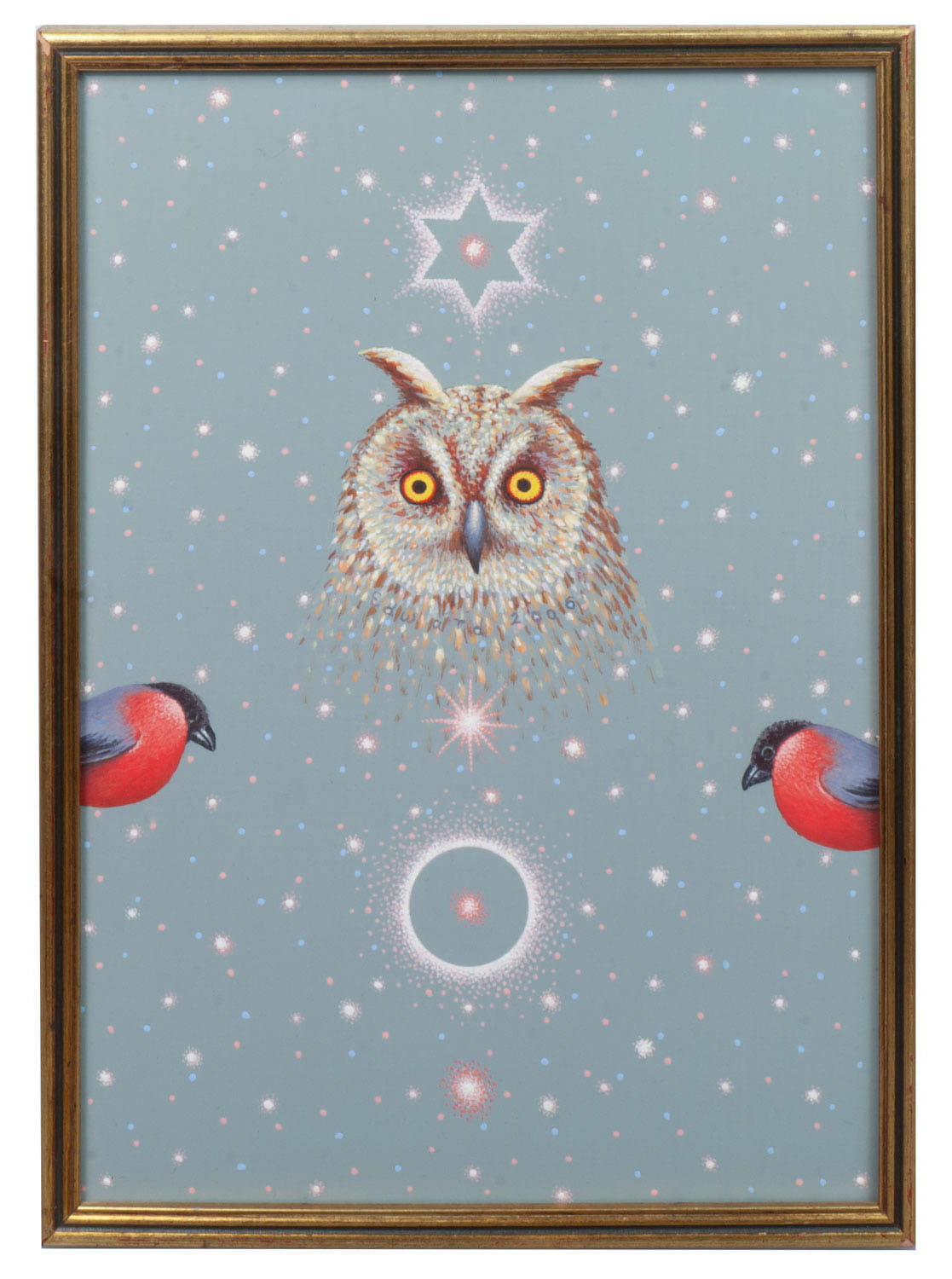 Oil on board, signed and dated “Edward 2006”, signed dated , and described on reverse “EDWARD NARKIEWICZ SOWA ZIMOWA 2006”.