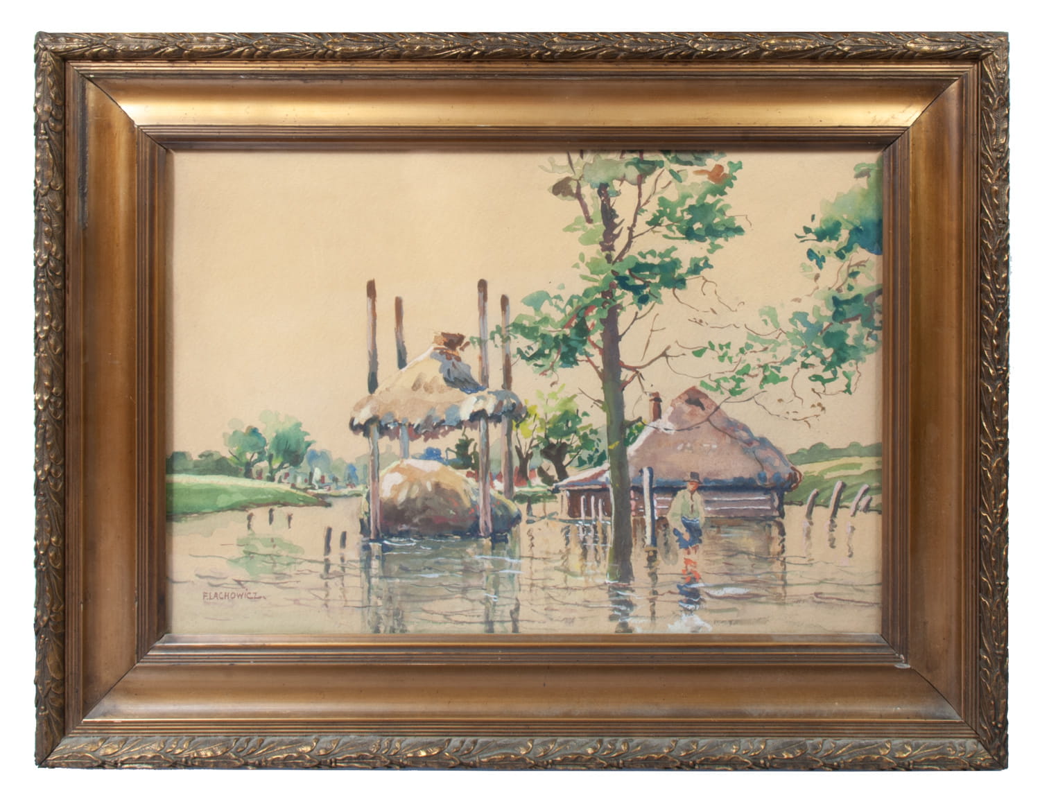 Watercolor on paper, signed lower left “F.LACHOWICZ”.