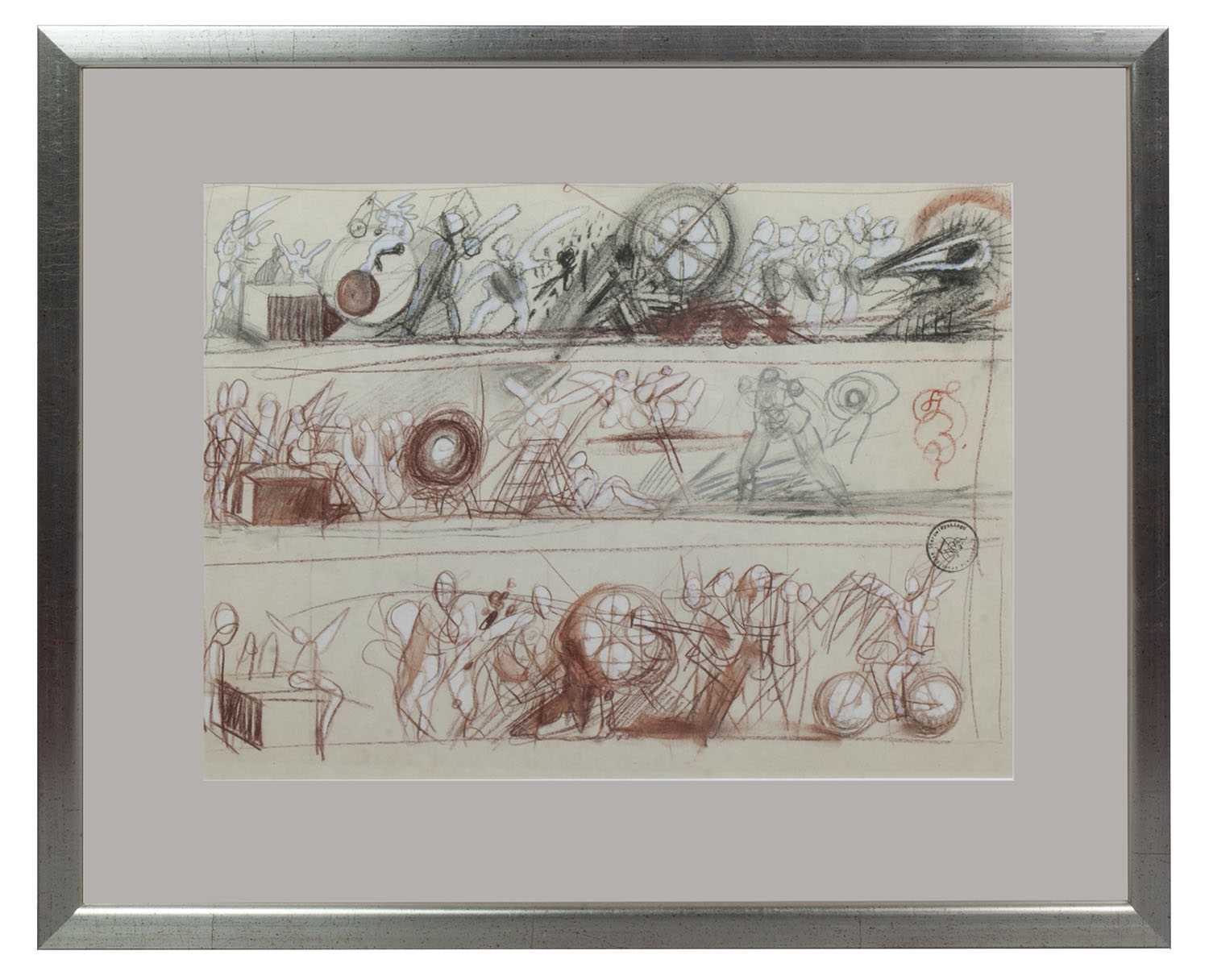Mixed media on paper, signed by monogram right center, stamp “z rysunków Franciszka Starowieyskiego”.