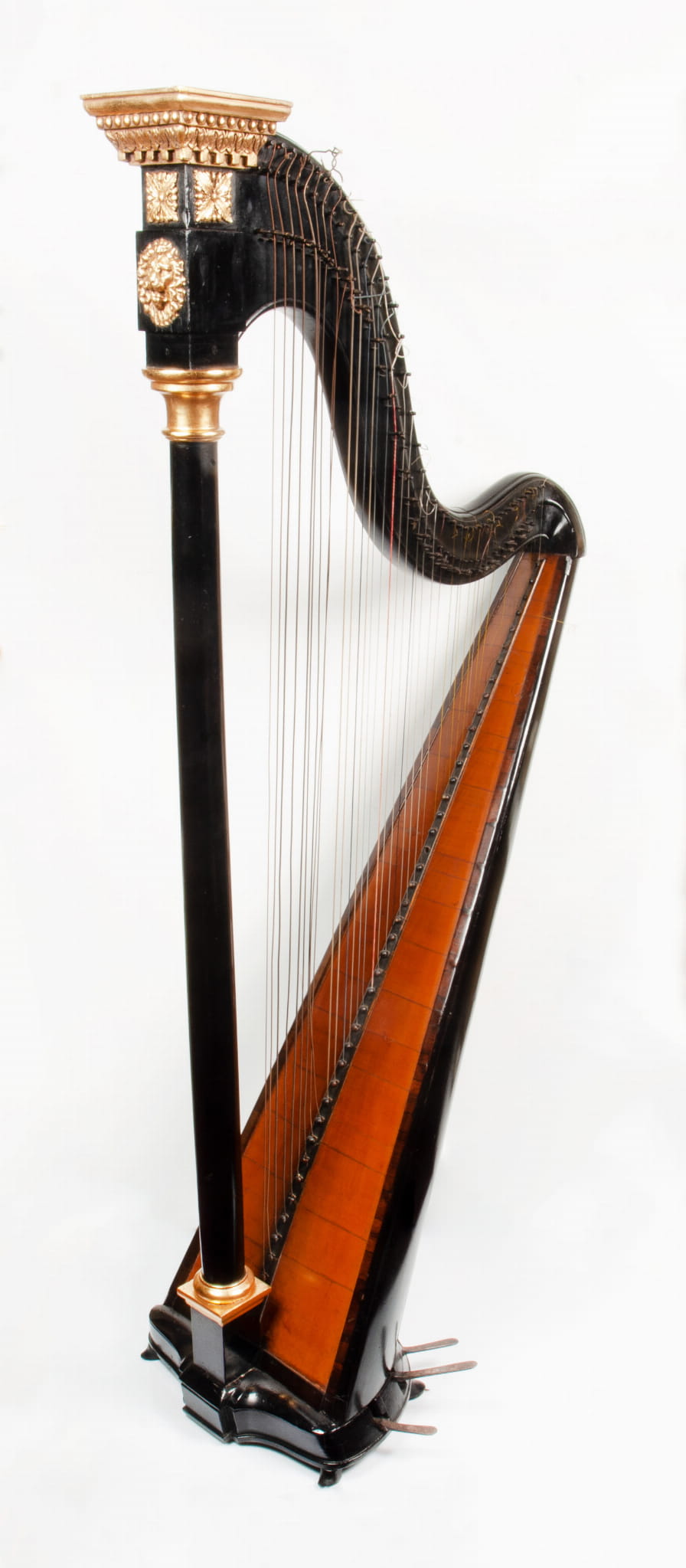 Biedermeier harp; gilded, ebonized and veneered wood.