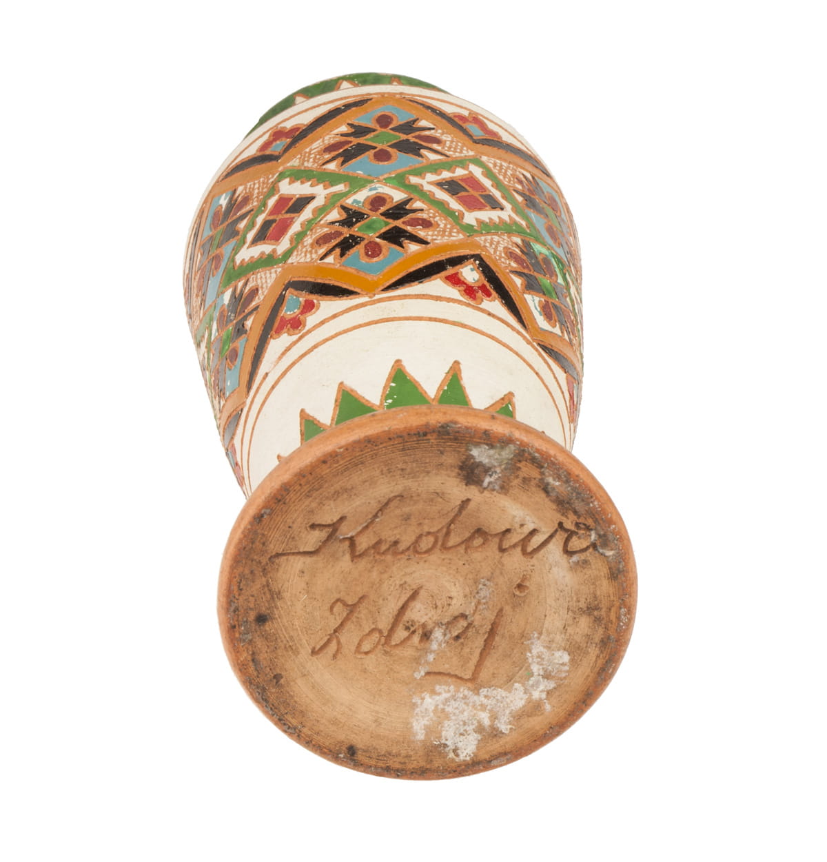 Ovoidal vase with colored, geometric and floral decoration in the folk, hucul style.