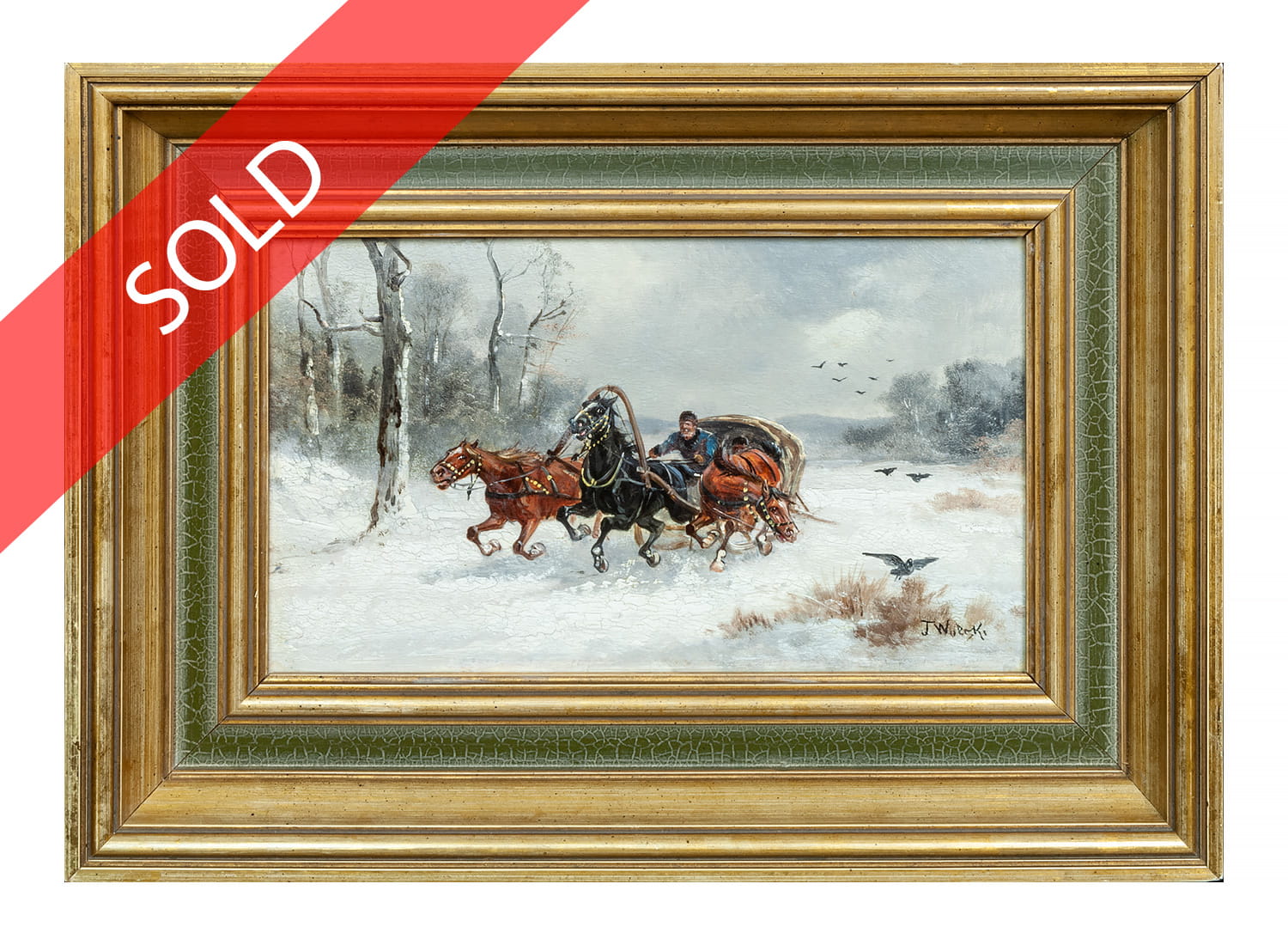 Jan Wolski - Polish painter. The artist eagerly painted for motifs popularized by "Polish Munich" such as sleigh ride, hunting, wolf attacks.