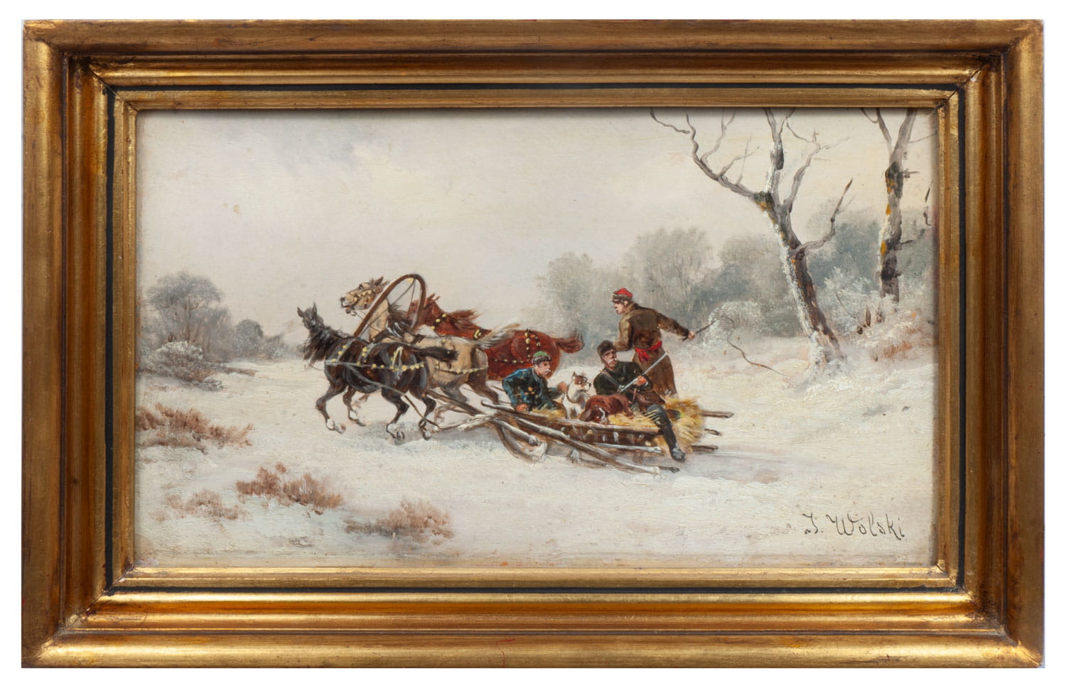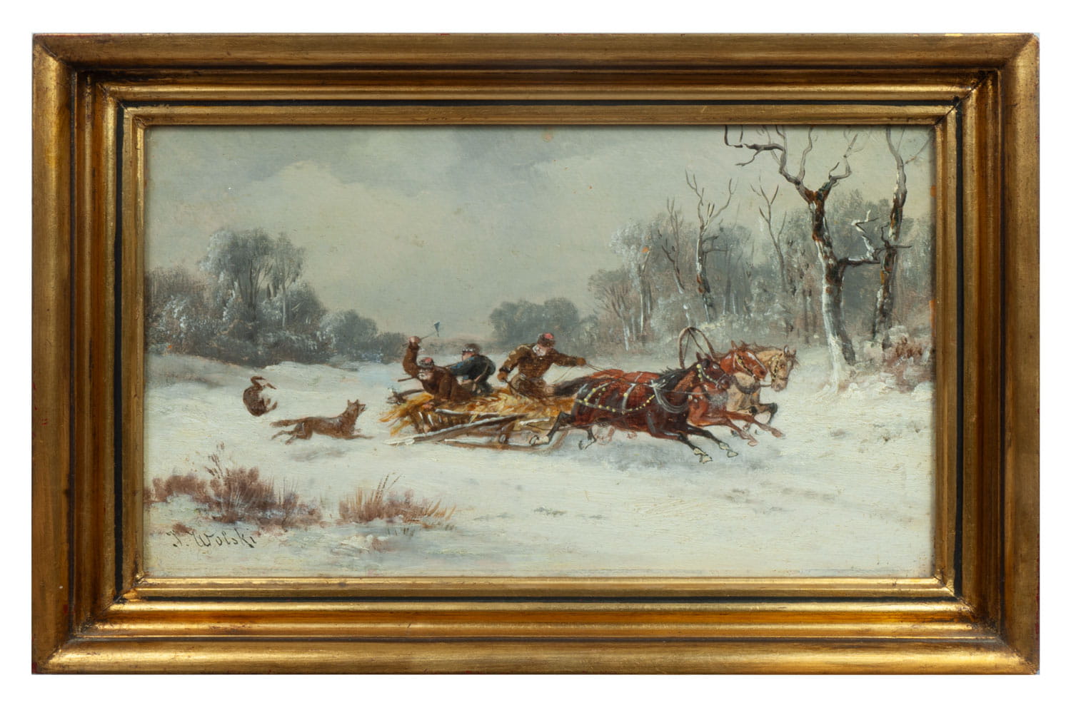 Jan Wolski - Polish painter. The artist eagerly painted for motifs popularized by "Polish Munich" such as sleigh ride, hunting, wolf attacks.