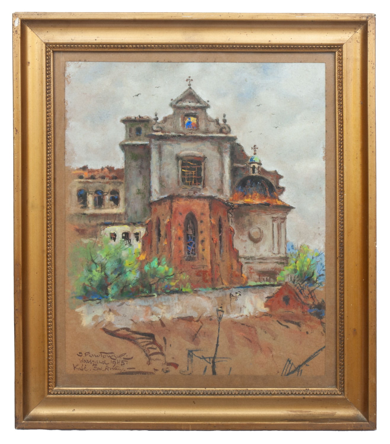 Watercolor on paper, signed, described and dated lower left. „J. Pawłowski Warszawa 1945 Kość. św. Anny”