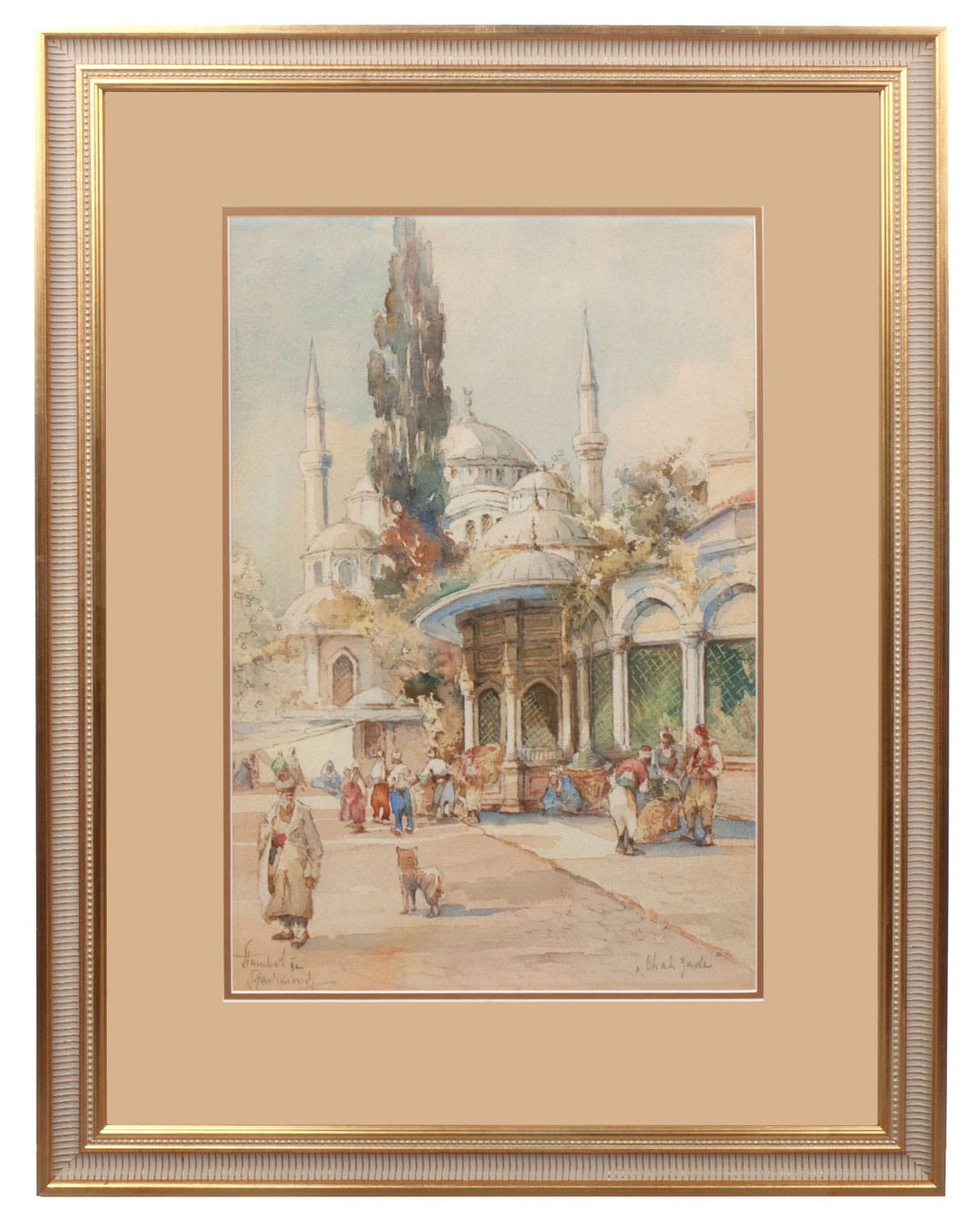Watercolor on paper, described and signed “Stambul J. Pawlikiewicz Chah Zade”.