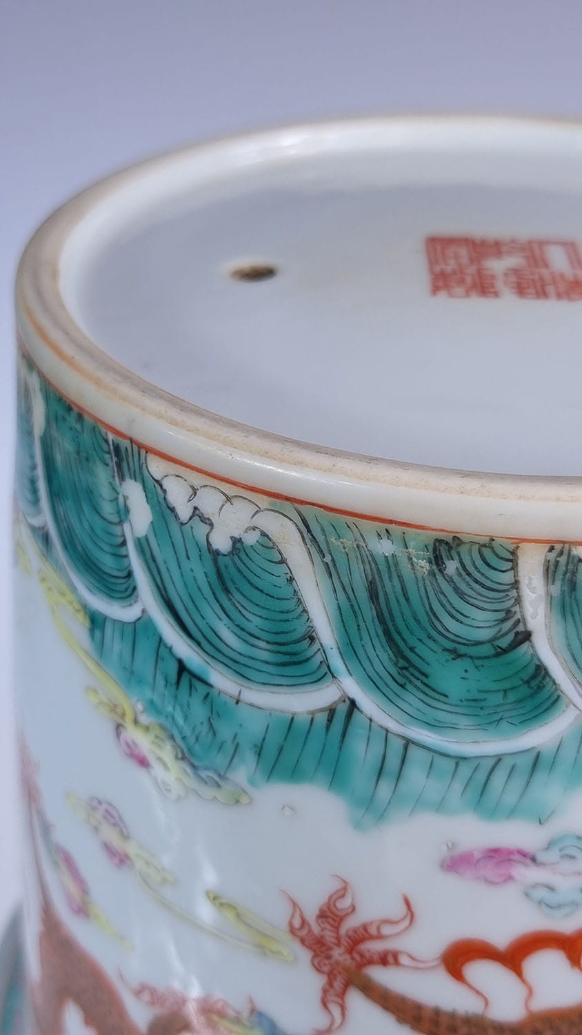 A pair of pots famille rose, signed Qianlong mark, decorated with dragon and phoenix.