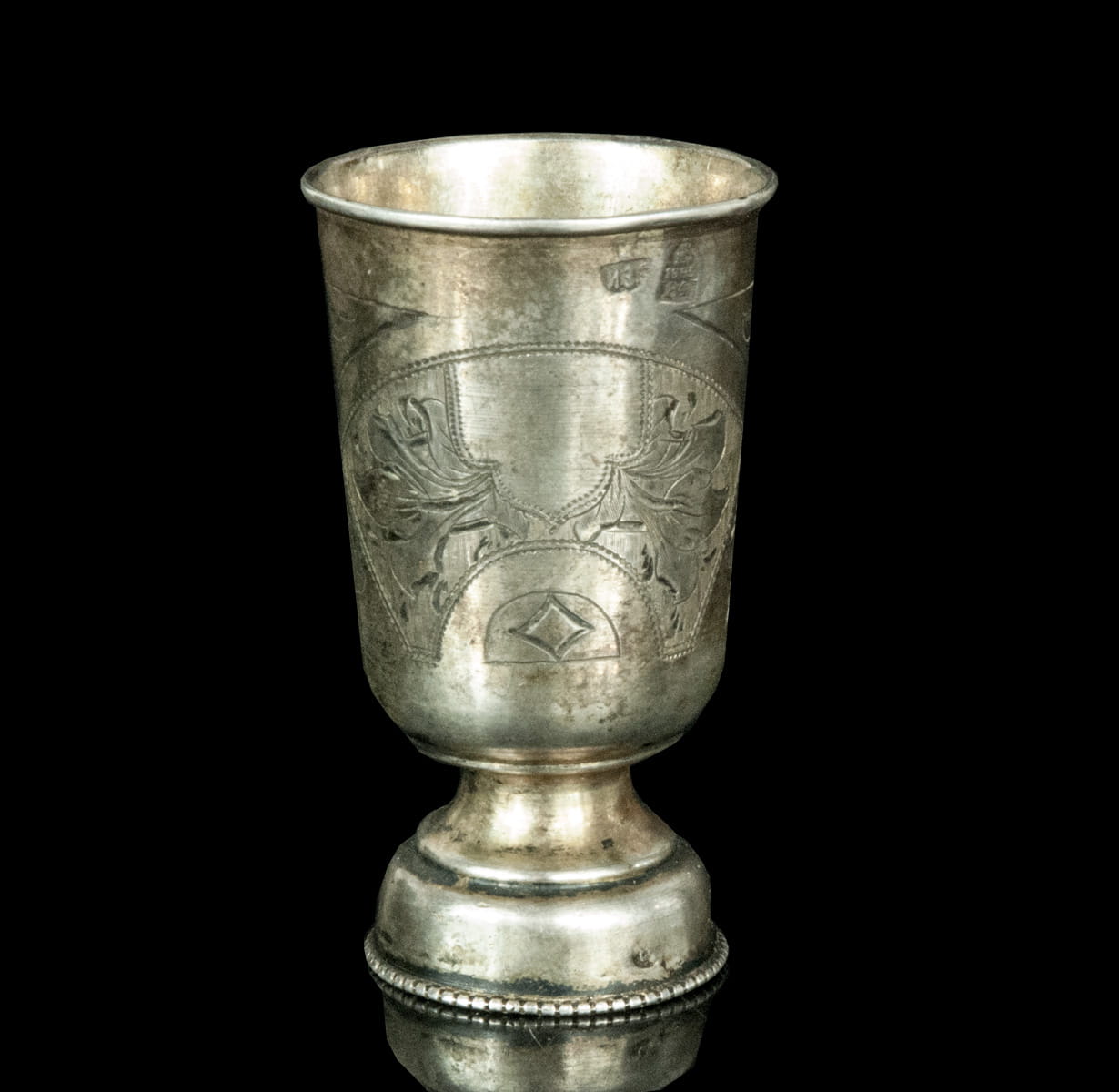 Pair of silver cups with niello; silver hallmark 84, signed by monogram of goldsmith „IZ”.