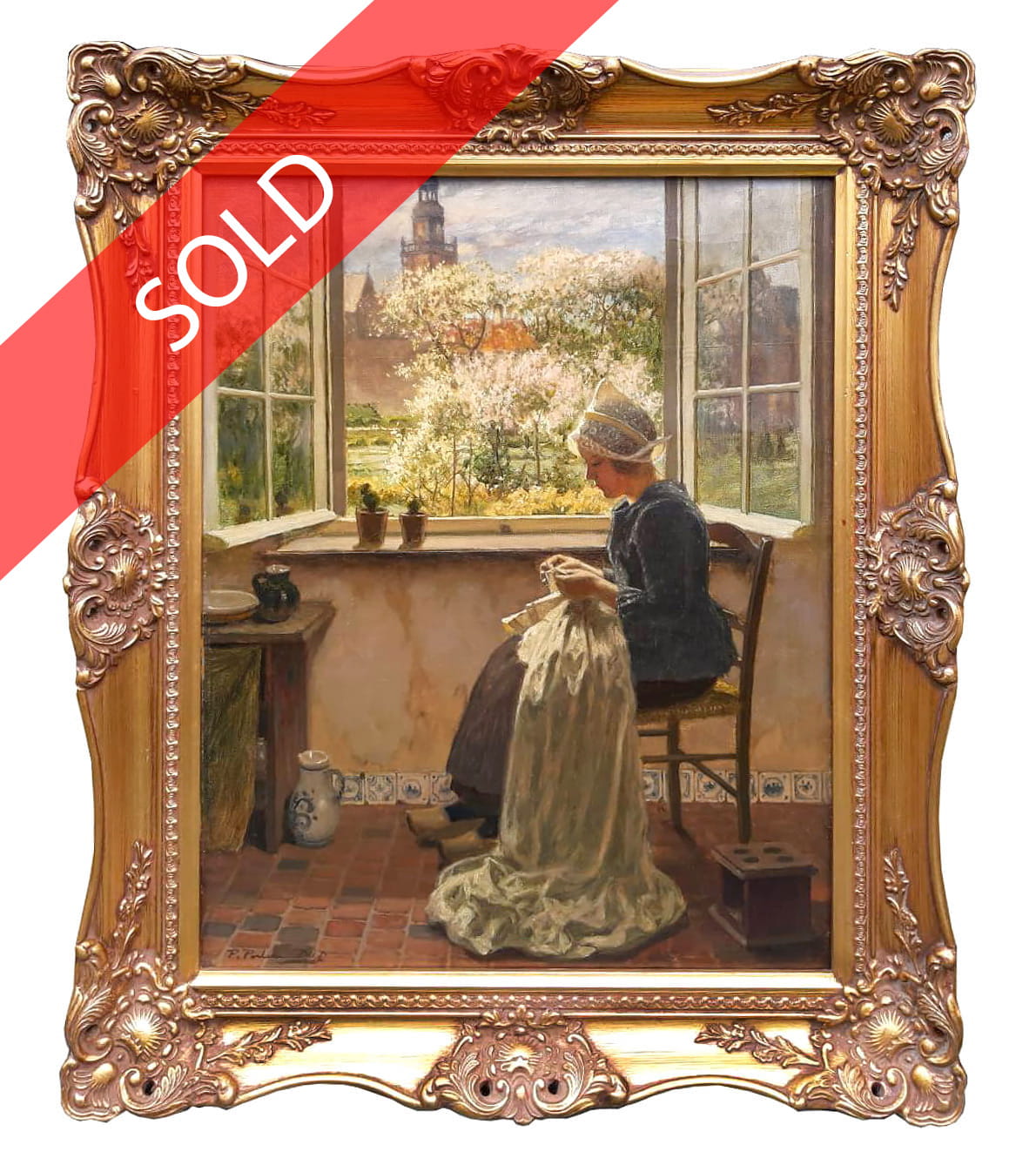 Peter Pulm (Düsseldorf 1882-1960 Düsseldorf ), was a German painter of genre and historical marine scenes. He studied at the Academy of Fine Arts in Düsseldorf under the direction of Eugen Kampf. He traveled widely throughout England and Scandinavia. He lived in the Netherlands where he painted the everyday lives of farmers and fishermen.
