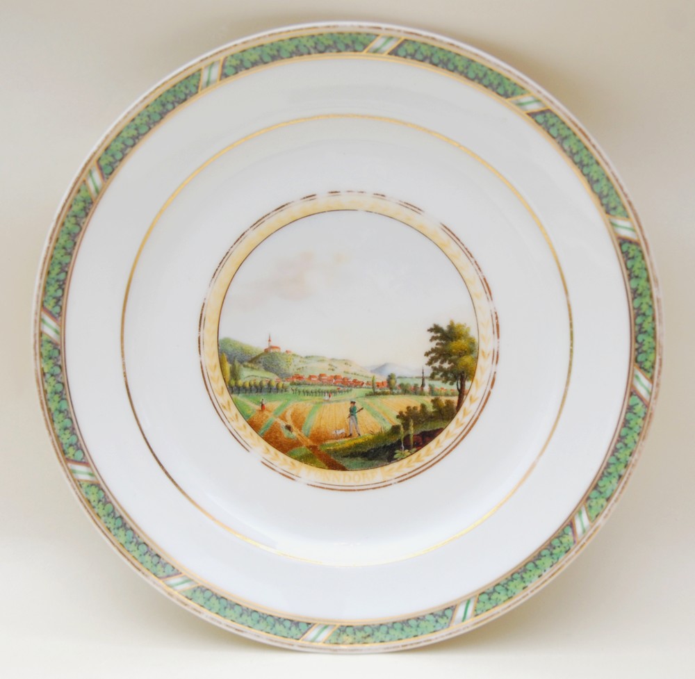 Porcelain plate with hand painted scene of Tonndorf (Hamburg disctrict today), signed with KPM mark.