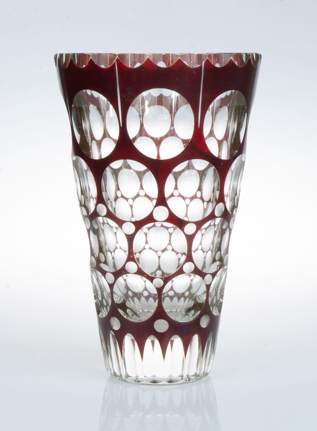 Layered, colored, cut glass.