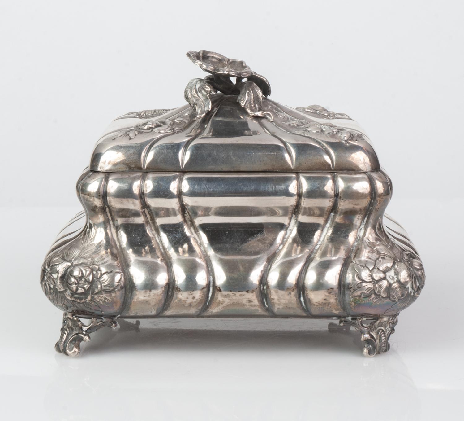 Sugar bowl made of silver 800, signed, gilded inside, decorated with floral motifs.