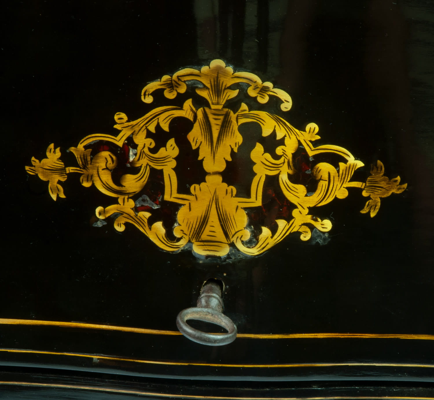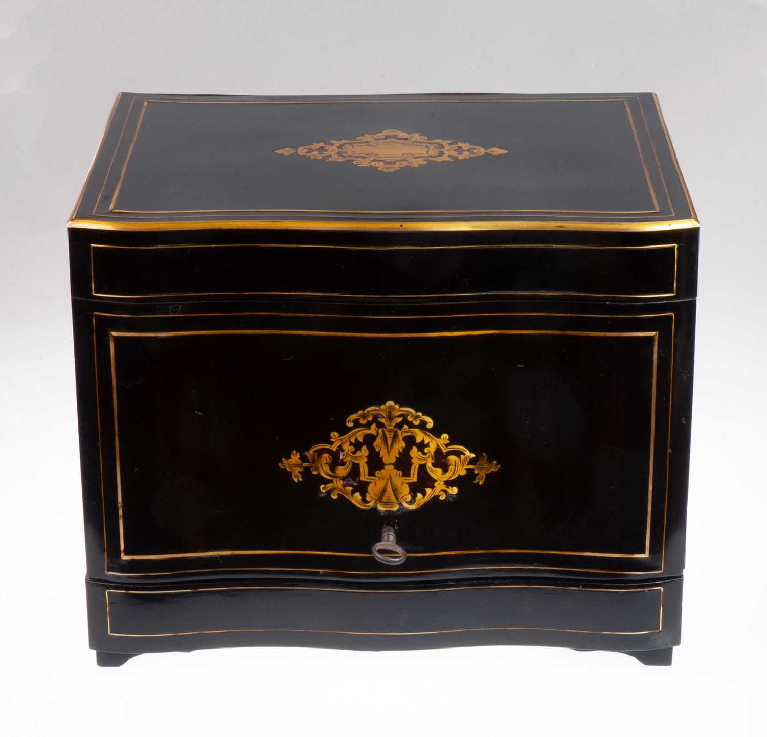 French wooden liquor cabinet with 4 carafes and 16 glasses. Lockable on key.