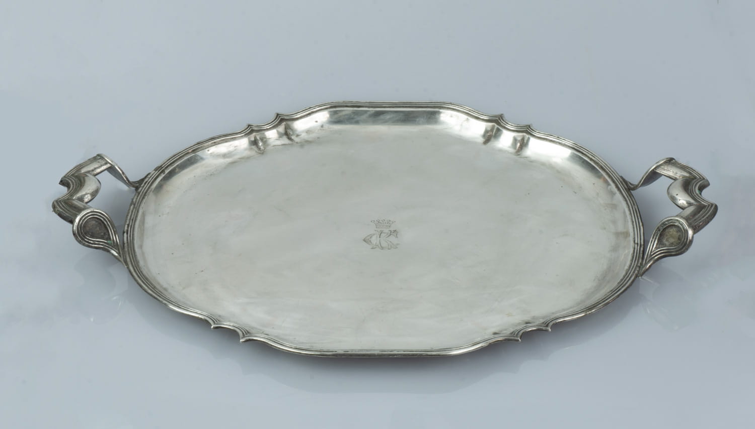 Tray made of silver 13 (812), signed by goldsmith monogram “TS”. Decorated by engraved with a count's crown and the initials "CK".