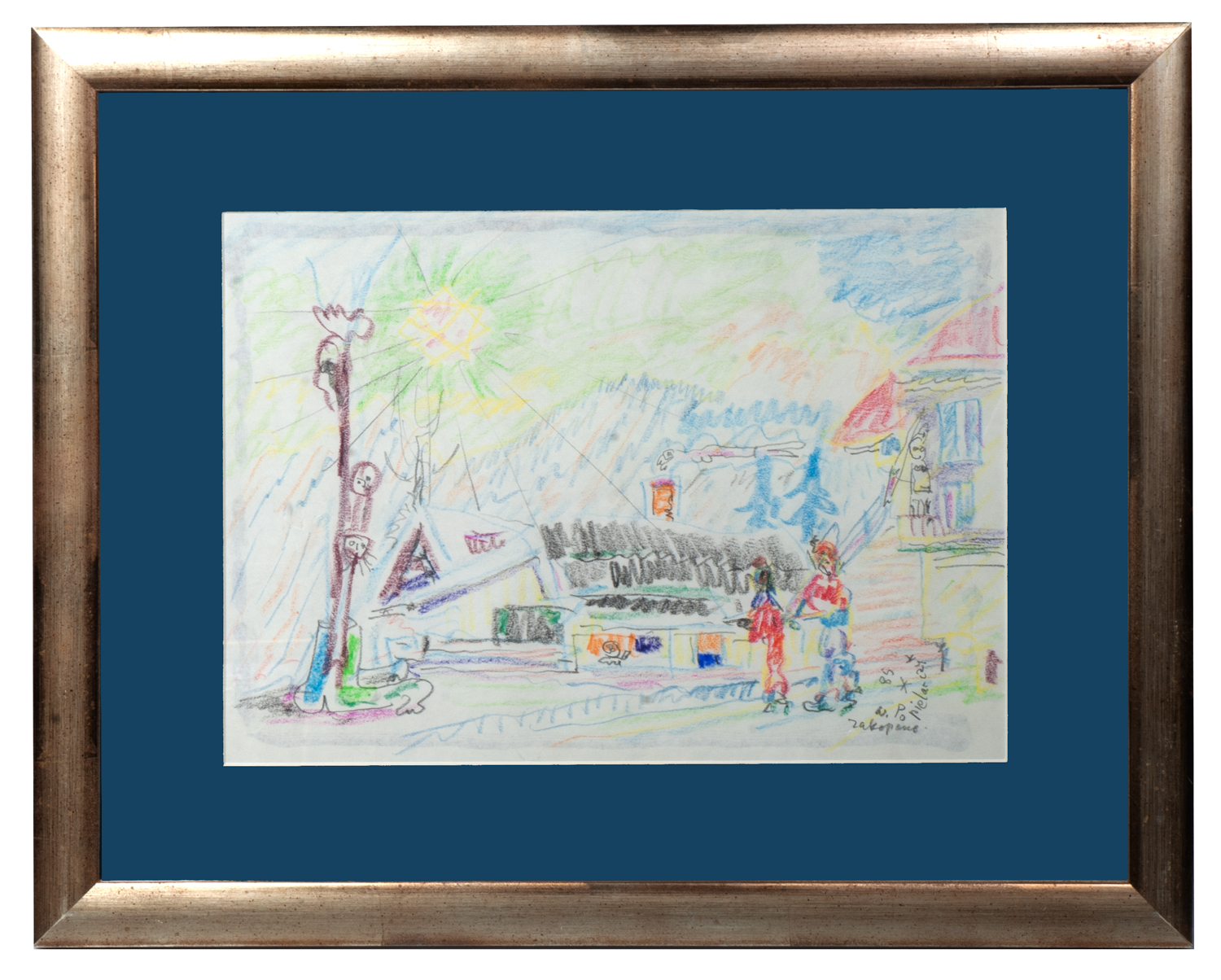 Drawing by crayons on paper, signed, described and dated lower right “W. Popielarczyk 85 Zakopane”.