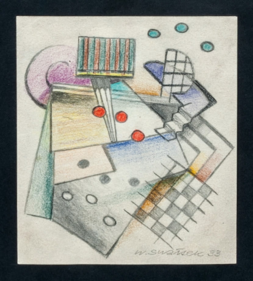 Pencil and crayons on paper, signed and dated lower right "W. SWAŁTEK 33".