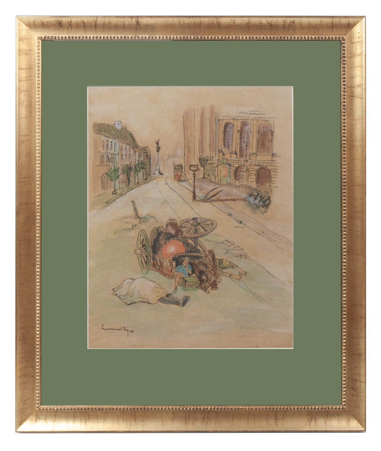 Watercolor and ink on paper, signed lower left “Czermański”.