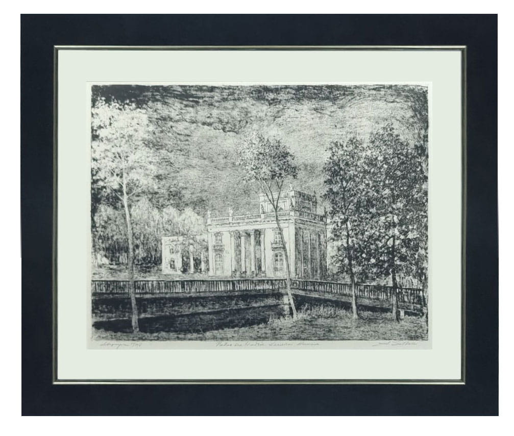 Litografia na papierze, opisana l.d. “litografia 30/50/II” śr. d. “Pałac na wodzie, Łazienki Warszawa”, sygnowana p.d. "A.Sołtan".