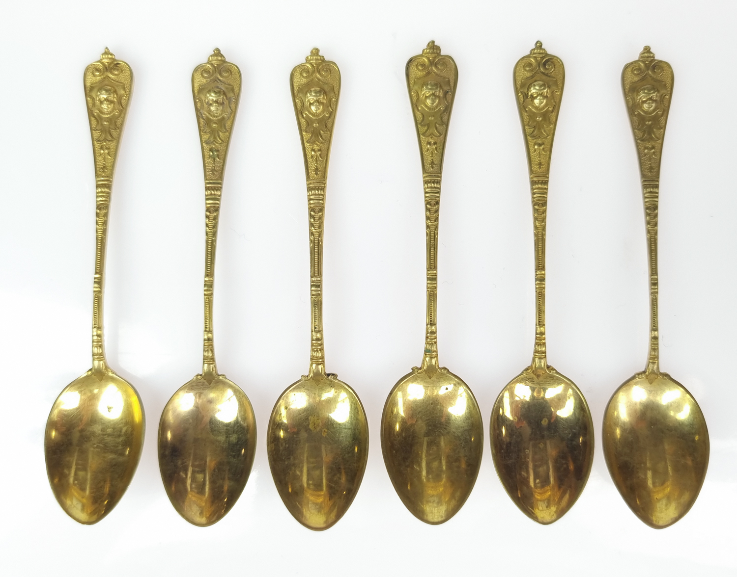 Komplet sześciu pozłacanych łyżeczek do kawy.