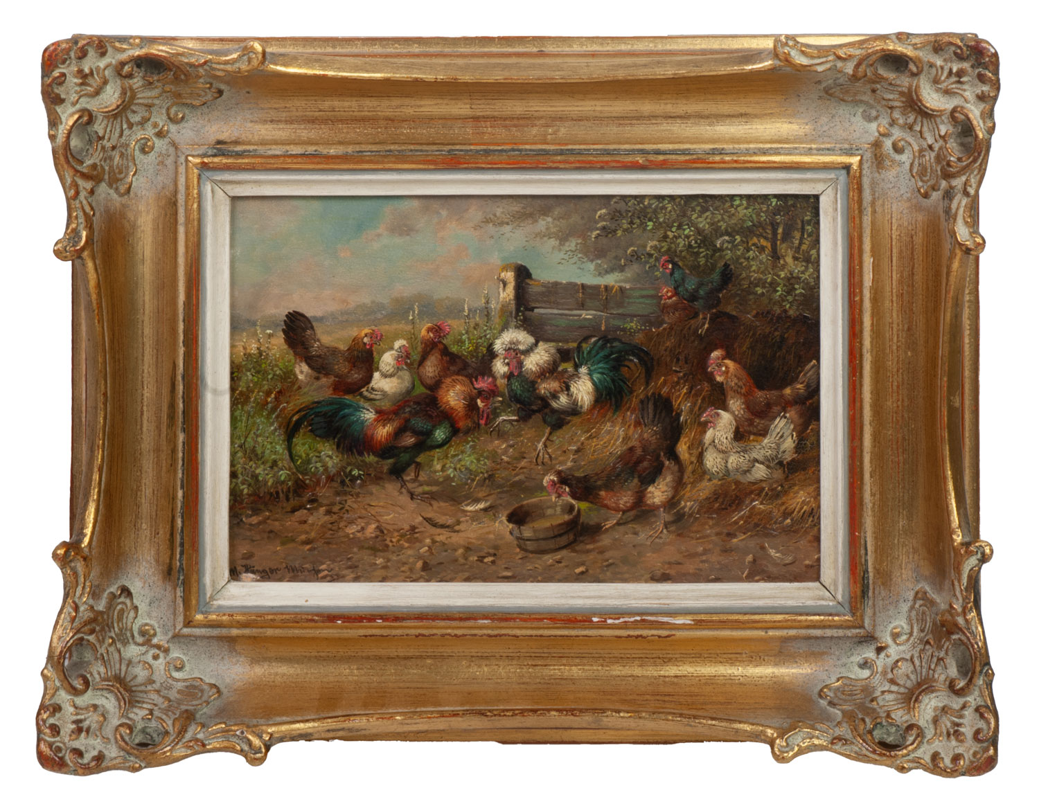 Max Hänger (Monachium 1874 - Fürstenfeldbruck 1941) malarz niemiecki wykształcony w Akademii Sztuk Pięknych w Monachium, gdzie m.in. studiował w pracowni malarstwa dekoracyjnego. Był przede wszystkim malarzem animalistą, przy czym jego specjalnością były ptaki - kury i ptactwo domowe oraz np. bażanty, cietrzewie, kuropatwy, pawie - przedstawiane na tle pogodnego pejzażu. Jego obrazy - przeważnie niewielkich formatów cieszyły się dużą popularnością i wzięciem. Niezwykle rzadko pojawiają się prace artysty większych formatów.