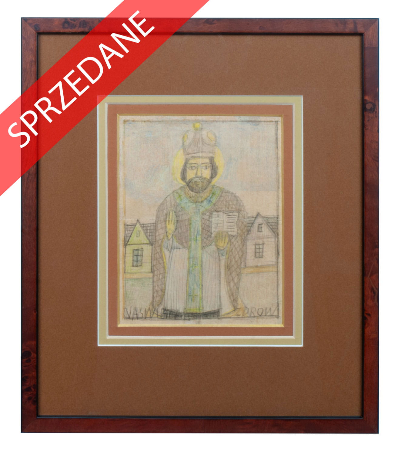 Ołówek i kredki na papierze, na rewersie pieczęć autorska.