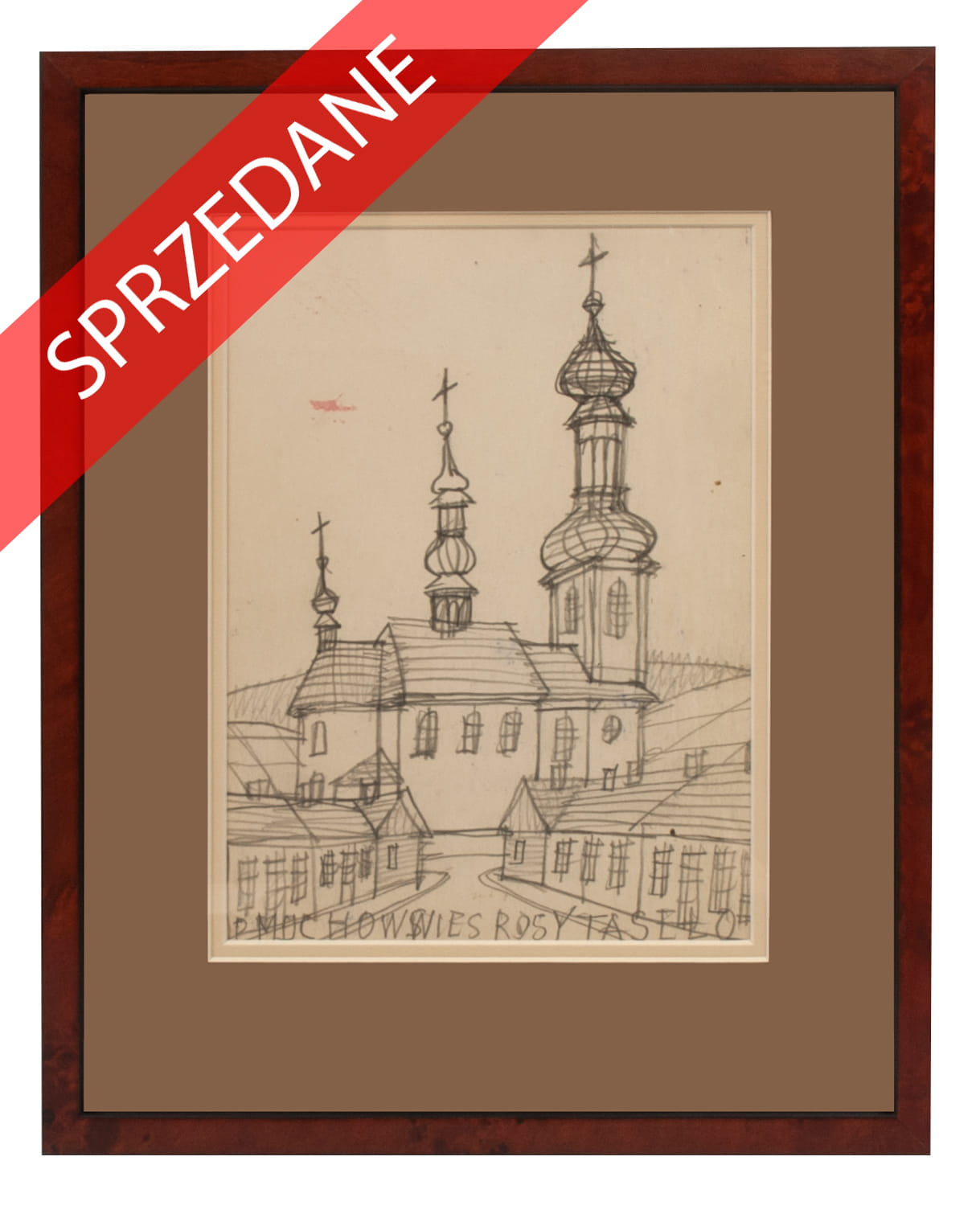 Nikifor Krynicki “Pejzaż miejski z zabudową i kościołem”