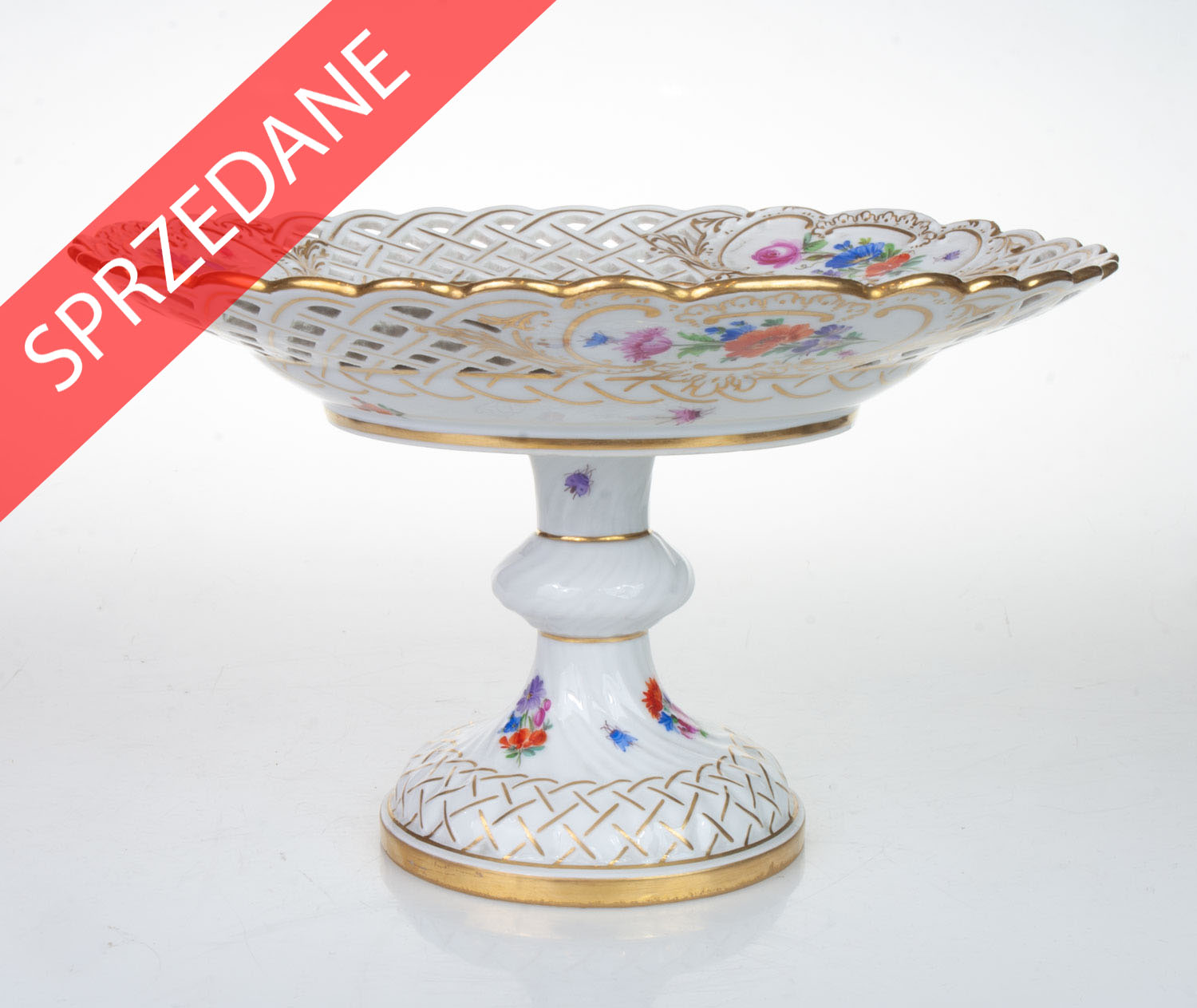 Porcelana ręcznie malowana, częściowo złocona, sygnowana.