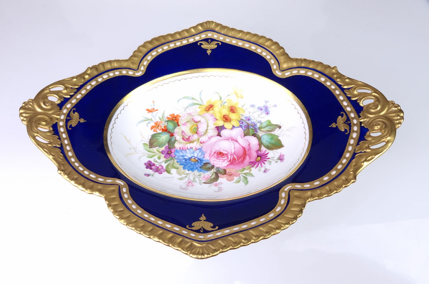 Porcelana ręcznie malowana, częściowo złocona, sygnowana.