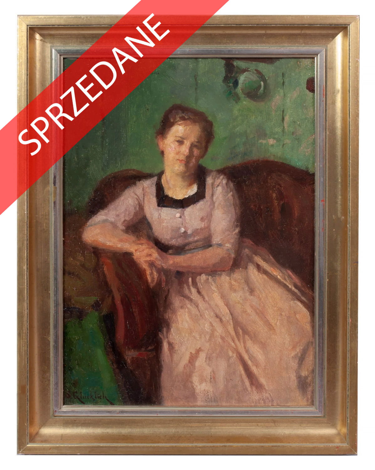 Olej na kartonie, sygnowany ld.: "S. Glücklich", na rewersie odręcznie opisany oraz pieczęć galerii Bilder König Kunsthandel w Darmstadt.
