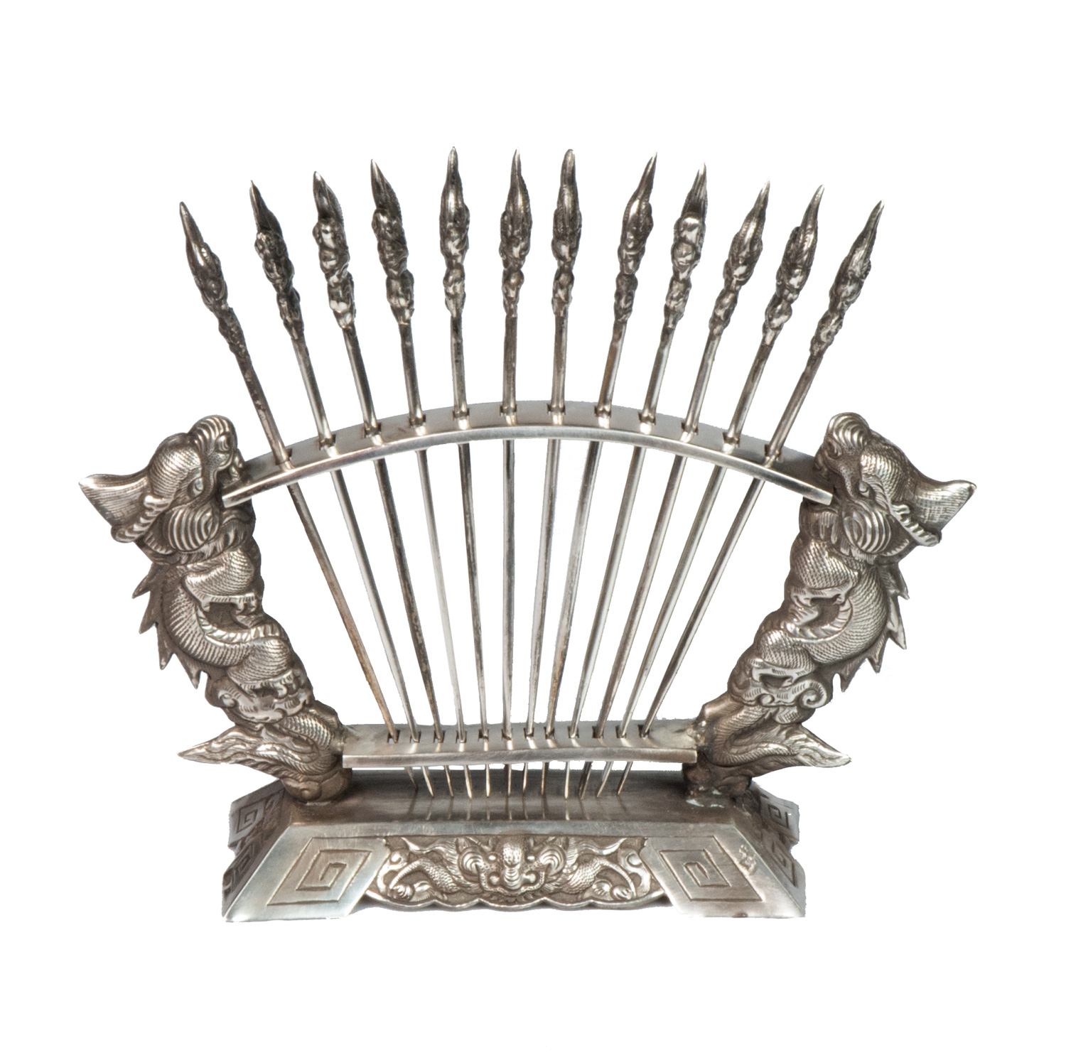 Szpadki do koreczków na stojaku, srebro.