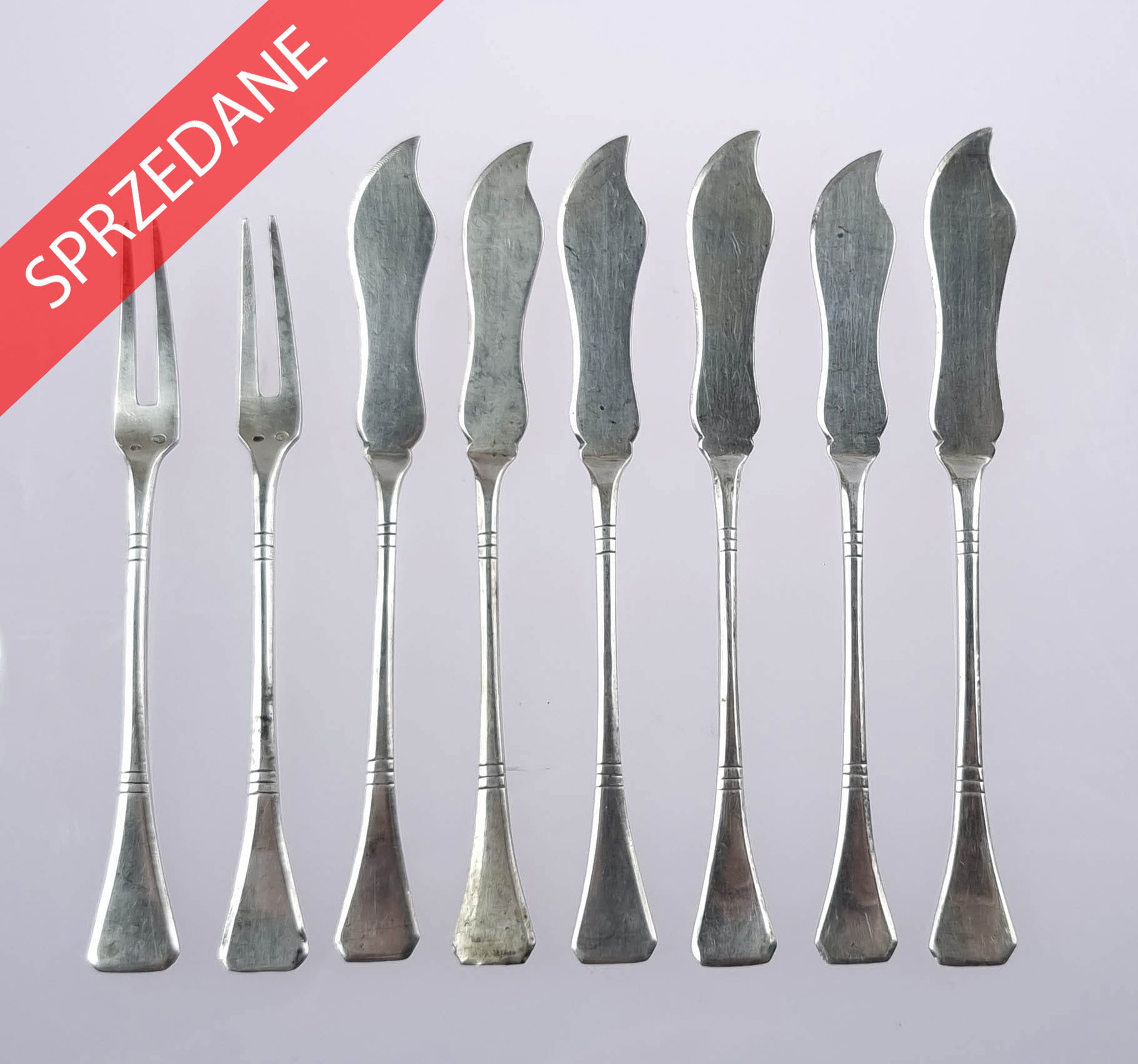 Zestaw serwingowy składający się z 2 widelczyków i 6 nożyków, srebro pr. 3.